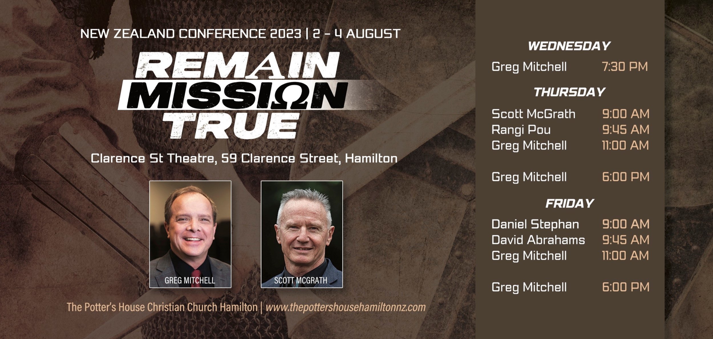 Our annual New Zealand Bible Conference 2023 is happening in Hamilton from the 2nd to the 4th of August (Wednesday through Friday).